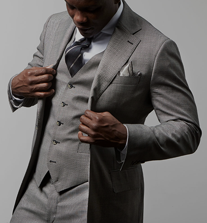 A 3 piece suit consists of three parts: a jacket, trousers, and a waistcoat (known as a vest in North America). While some may suggest that all three components should be made with the matching fabric, you can also wear a contrasting waistcoat or jacket to differentiate the look. A 3 piece suit consists of three parts: a jacket, trousers, and a waistcoat (known as a vest in North America). While some may suggest that all three components should be made with the matching fabric, you can also wear a contrasting waistcoat or jacket to differentiate the look.